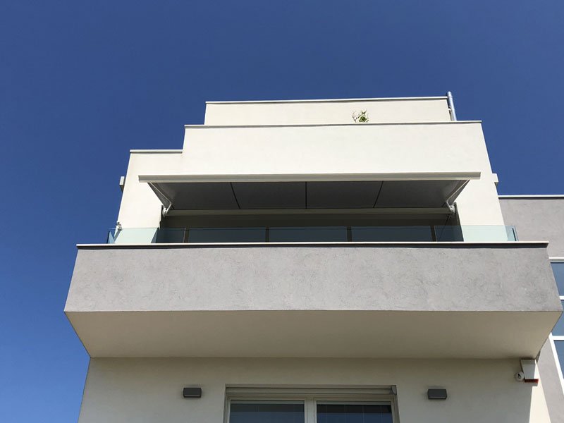Movimentazione: manuale ad argano con asta, a richiesta con motore a pulsante o con radiocomando e integrabile con sistemi di protezione per il vento, sensore crepuscolare o sensore pioggia.